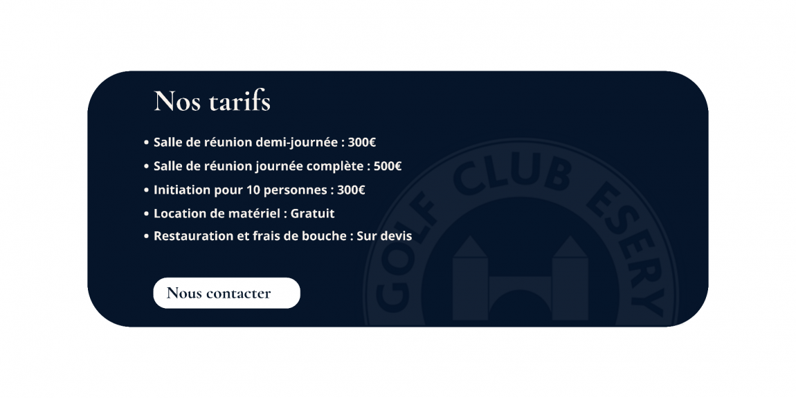 Pour chaque occasion professionnelle, l’équipe du Golf Club Esery est à votre disposition pour faire de votre journée un succès.