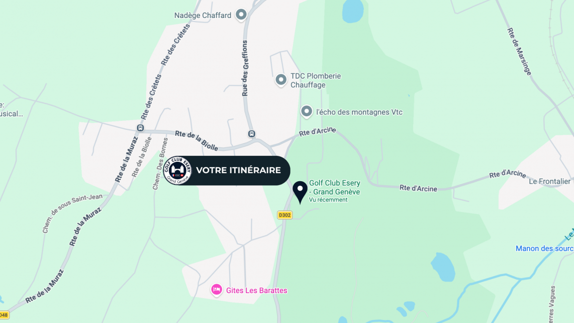 Le Golf Club Esery vous accueille dans un cadre préservé, à seulement quelques minutes de l’autoroute A40 et proche de Genève. Que ce soit pour une partie de golf, un moment en terrasse ou une balade au grand air, l’accès est simple, rapide et agréable.