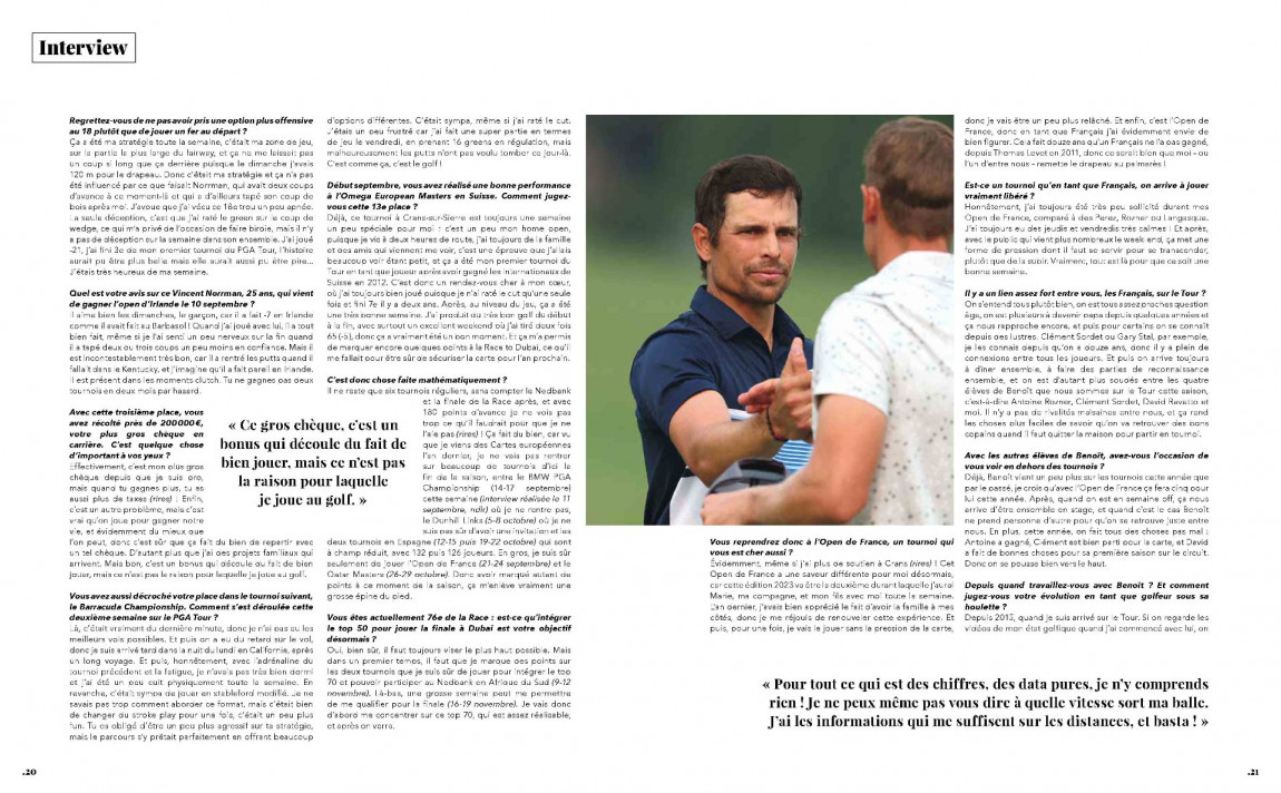 Suite à ses récentes performances, qui l'ont notamment conduit à disputer le premier tournoi PGA Tour de sa carrière, Adrien Saddier a livré une longue interview au magazine Practice. Nous vous invitons à la découvrir...